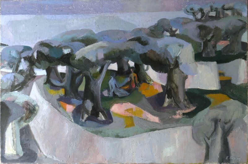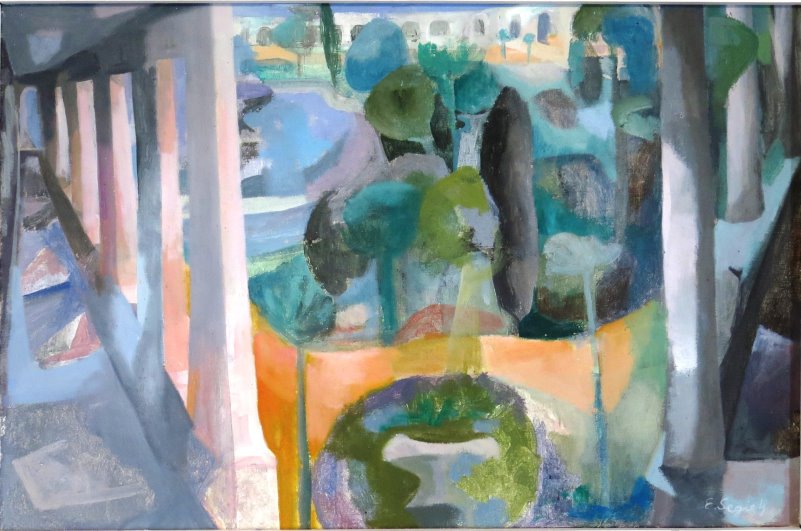 Eigen- und widerständig waren Elisabeth und Johannes Segieth als Maler von Anfang an. Denn weder ihre Lehrer an der Münchner Akademie prägen ihr Schaffen nachhaltig, noch schließen sich beide dem Mainstream Abstraktion an, die in der westlichen Welt nach 1945 die Kunstszene dominierte. Elisabeth wird bis in ihr Spätwerk dem Gegenstand verhaftet bleiben. Johannes‘ Bildsprache entwickelt sich jedoch ab Mitte der 1970er Jahre in Richtung Abstraktion. Die Bilder der 1950er und frühen 1960er Jahre spiegeln die Aufbruchsstimmung der Nachkriegszeit wider. Das Thema „Ausblick“ wird von beiden Malern thematisiert. Johannes greift anfänglich zu kräftigen, kontrastierenden Farben, die plan und flächig daherkommen. Bald aber wird seine Palette licht und hell, und locker hingeschriebene Pinselstriche, Punkte und Linienbeschreiben offene Bildräume. Elisabeth entwickelt von Beginn an eine tonige, aus der Abwägung von warmen und kalten Farben entwickelte Malkultur und moduliert ihre Landschaften durch fein abgestimmte Farbfelder, die Mitte der 1960er Jahre zu kleinteiligeren, farbintensiveren Flecken mit unruhiger Handschrift mutieren. Das Licht des Südens, erfahren auf Reisen durch Italien, Südfrankreich und Griechenland wird beiden Malern zum großen Erlebnis.