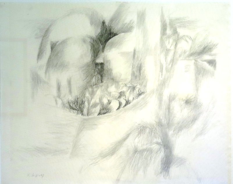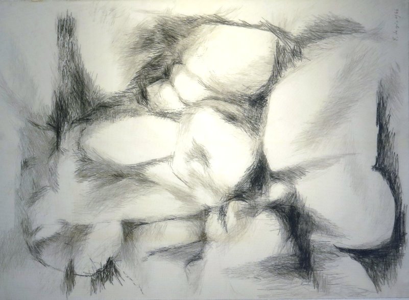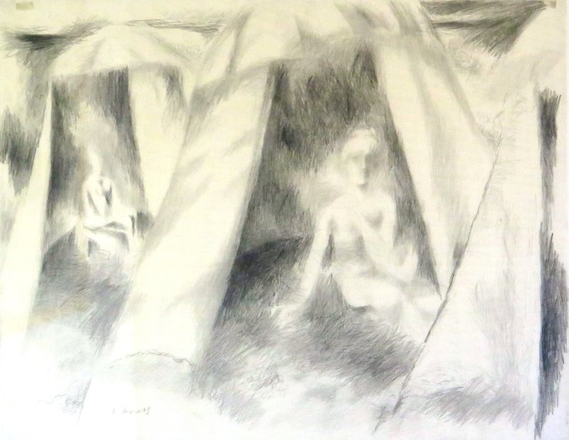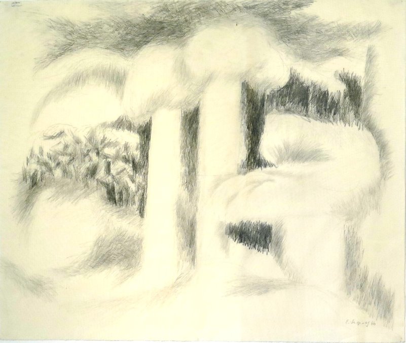 Und auch Elisabeth Segieth schlägt Mitte der 1960er Jahre einen neuen Weg ein: sie verabschiedet sich von der Malerei und findet in der großformatigen Bleistift- und Graphitzeichnung ihr neues Medium. Sie tritt nun nah an die Sujets heran, zeichnet monumentale Köpfe, weibliche Akte und Torsi, erodierte und zerstörte Fragmente antiker Architekturen, gestürzte Bäume, eine Wolke, die sich vor einen Berg schiebt. Sie bleibt in ihrer Welt. Und auch ihr Duktus ist weiterhin malerisch. Denn nicht der Fluss der Linie bestimmen ihre Zeichnung, sondern kurzrhythmische Schraffuren und Strichlagen. Der weiße Grund des Papiers ist dabei ihr Rohling, aus dem sie den Gegenstand herausarbeitet, formt und modelliert. In langwierigen und kraftraubenden Arbeitsprozessen geht sie mit tausenden von Bleistiftstrichen gegen das weiße Nichts an, verleiht ihren Vorstellungen Gestalt. Nachzutragen wäre noch, dass beide Maler seit den 1950er Jahren regelmäßig auf Ausstellungen im In- und Ausland vertreten waren. Beide gehörten der Münchener Secession an, Johannes war jahrelang Präsident der Secession und zeitweilig auch Präsident der Ausstellungsleitung Haus der Kunst.