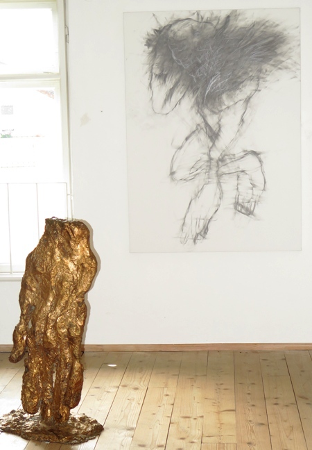 mindestens den gleichen Stellenwert wie den der Skulptur zu. Zeichnen ist für ihn seine unmittelbarste Gestaltungsmöglichkeit. Der Bleistift gehorcht den leichtesten Vibrationen der Seele und ist unbestechlich. Er lässt keine Täuschungen zu, da der Strich nicht fließen kann, wenn keine Energie vom Künstler ausströmt. Seine direkten Niederschriften aus dem Innersten, oft aufgetragen im leonardischen Maßstab 1:1, umkreisen in ihren zweidimensionalen Strichen die Schichten der Gestalt und holen sie aus der Tiefe des Raumes und der Zeit. Das fokussierende Umkreisen verdichtet zuweilen die Auftragungen so stark, dass die Figuren aus den Zeichnungen herauszuspringen scheinen, eine optische Illusion, wie wir sie von den trompe-l'oeil -Effekten der manieristischen Malerei her kennen oder ihnen in der 3-D-Filmtechnik gerechneter Cyberspace-Räume begegnen.